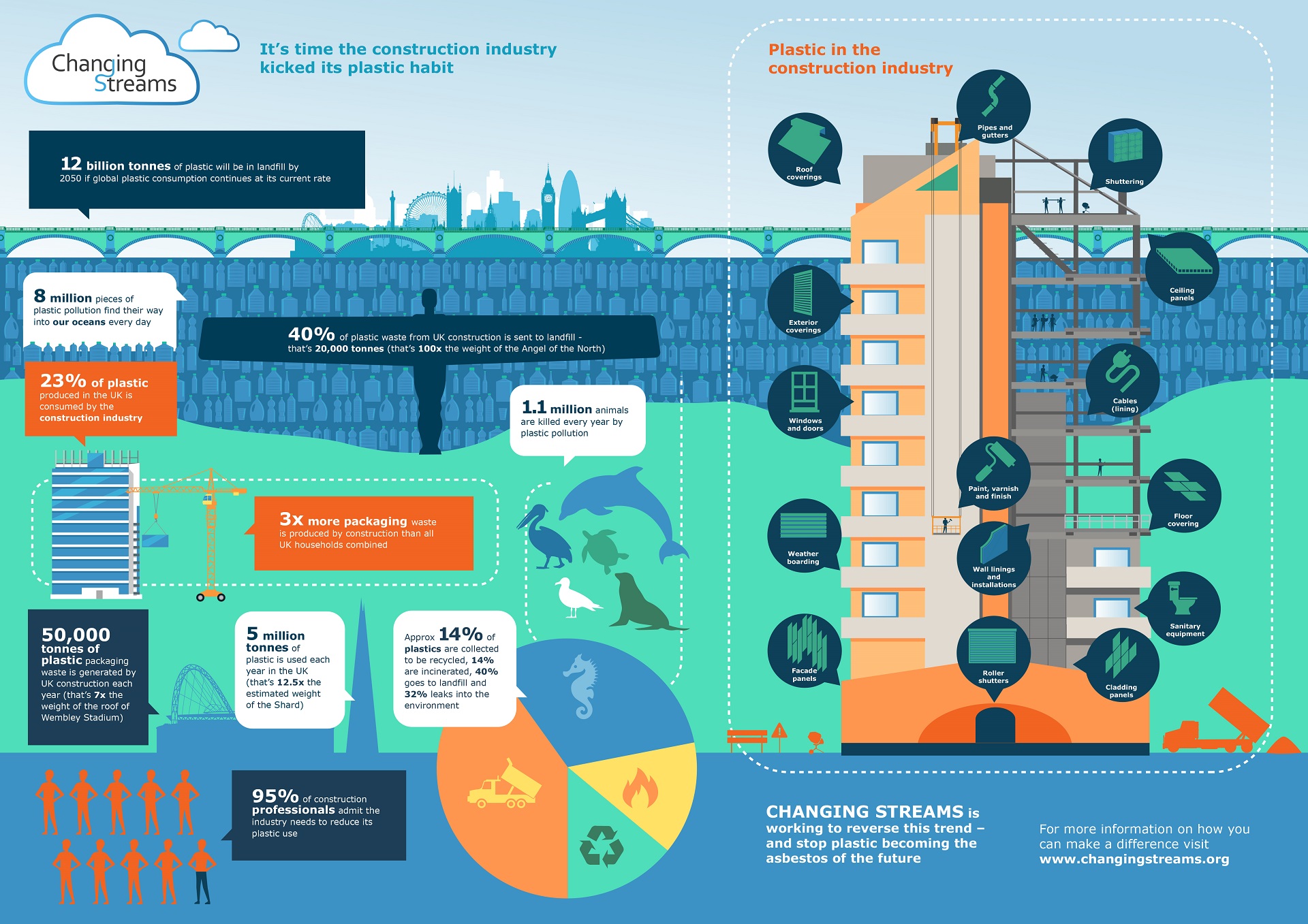 Changing Streams is bringing together experts from across the construction, scientific and environmental communities, to facilitate research and development programmes to drive a reduction in plastics in buildings and throughout the built environment supply chain.